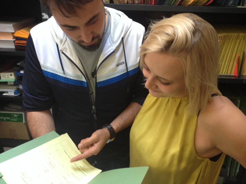 Kasia, bénévole accueillante sociale, travaille le suivi d’un dossier avec Arnaud, le responsable opérationnel.