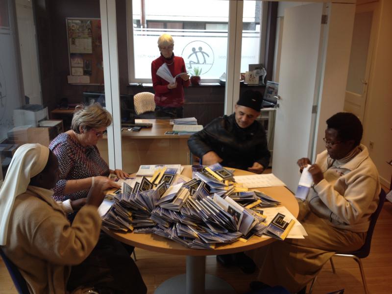 Bénévoles de tous types sont réquisitionnés à certaines occasions, comme ici, pour la préparation de l’envoi de notre Lettre-Info